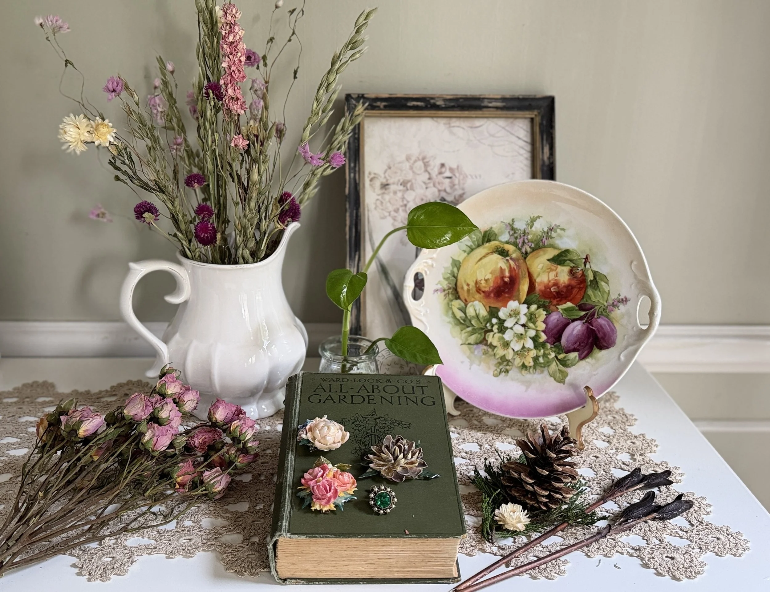 I hope these ideas help you find a moment of peace today. If you’re looking for that one little masterpiece to anchor your room, be it a hand-painted porcelain plate or botanical painting, consider exploring my latest finds.